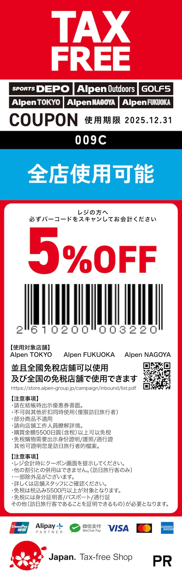 本文優惠券可在全日本Alpen Group免稅店舖使用。