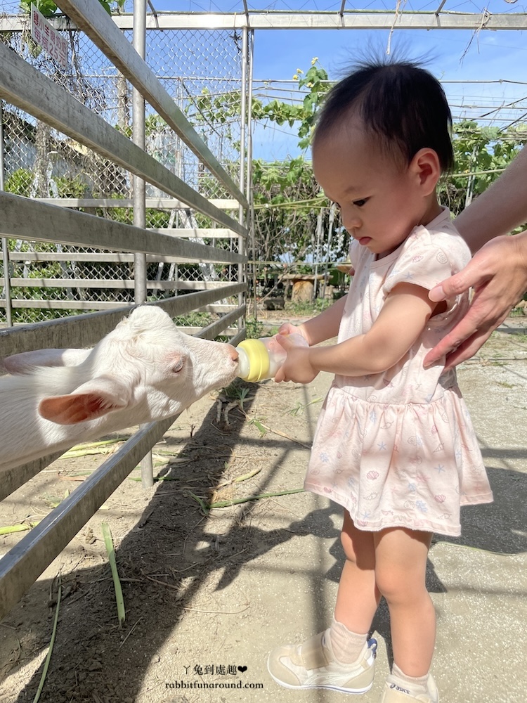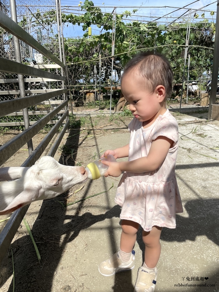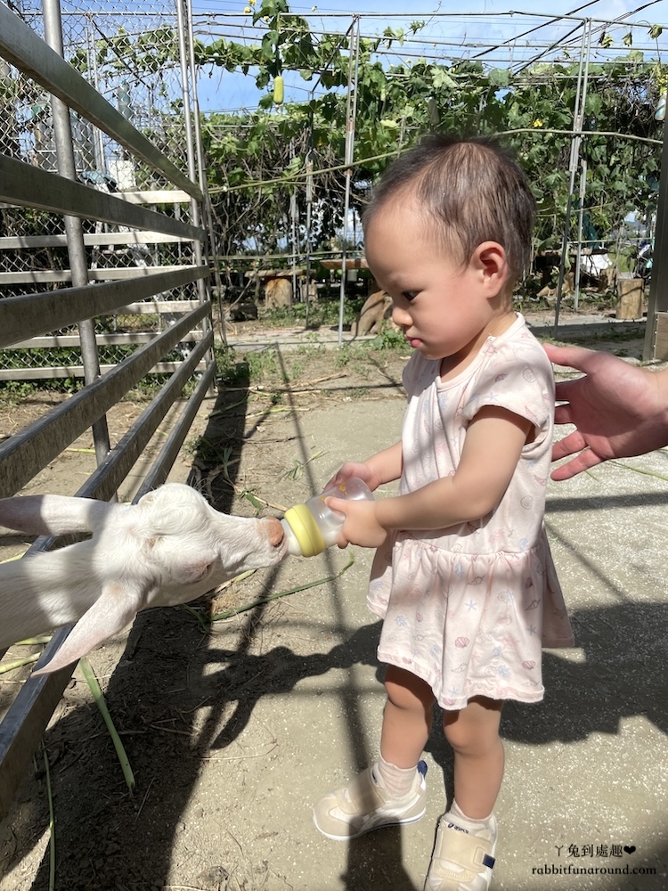 這種時候免費停車塲、免門票又好玩的景點都非常加分,在這裡小朋友能做的活動有很多,餵小羊喝奶、割草、餵羊吃草、擠羊奶、喝羊奶、玩沙子,尤其擠奶體驗非常難得,可以讓小朋友近距離接觸到羊咩咩。