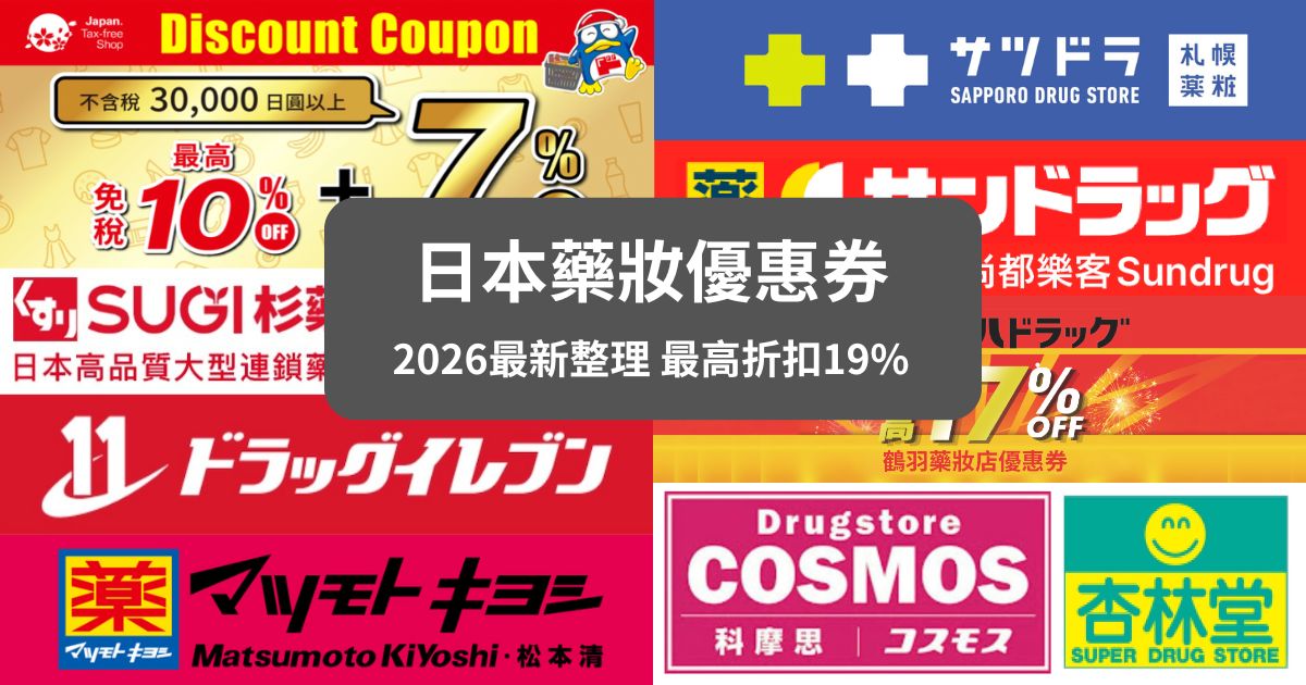 到日本旅遊幾乎一定會逛日本藥妝店,各種保養品、美妝、保健食品與日用品全都超好買!而且只要結帳時出示手機優惠券+護照,搭配免稅輕鬆享高達13%至19%的折扣優惠。在日本購物想輕鬆省錢、買得更划算,本文「2026日本藥妝優惠券總整理」一定要收藏起來!