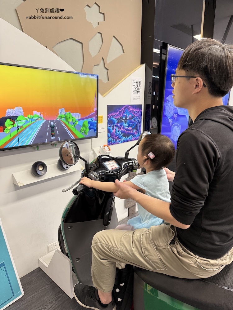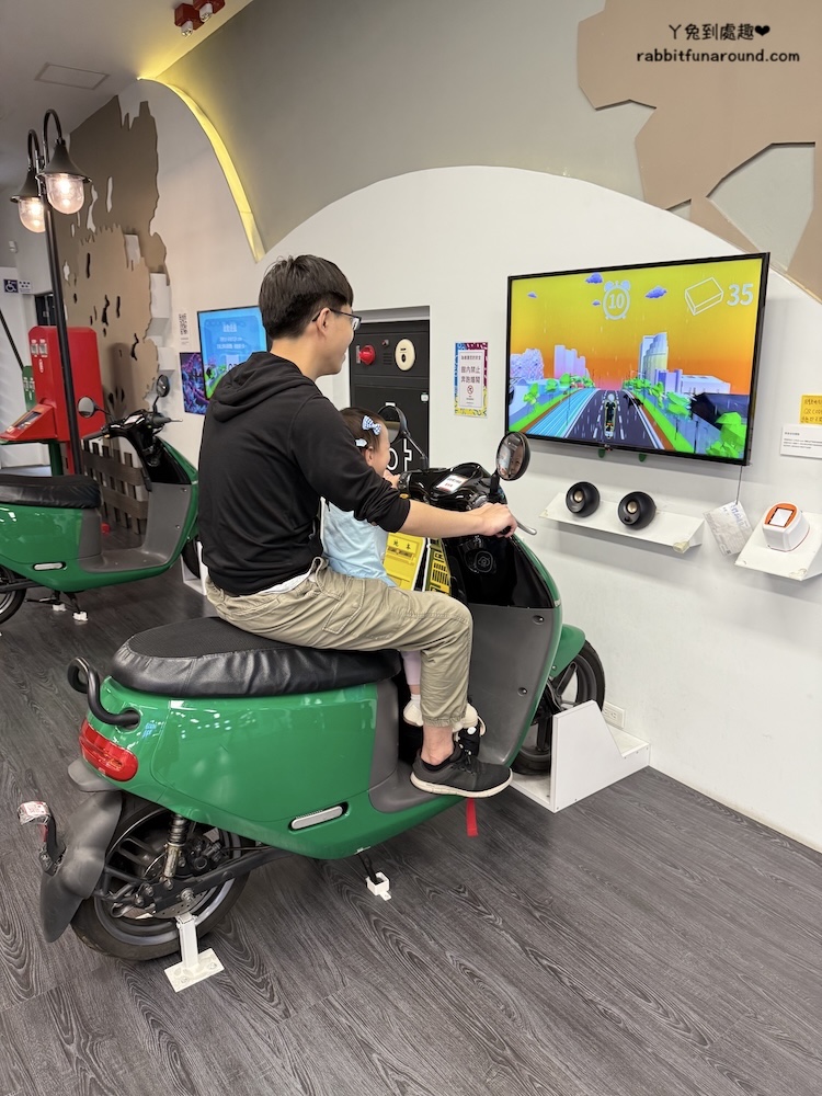 這是整個博物館裡小糯米最愛的互動設施,體驗郵差騎機車送信的小遊戲。
