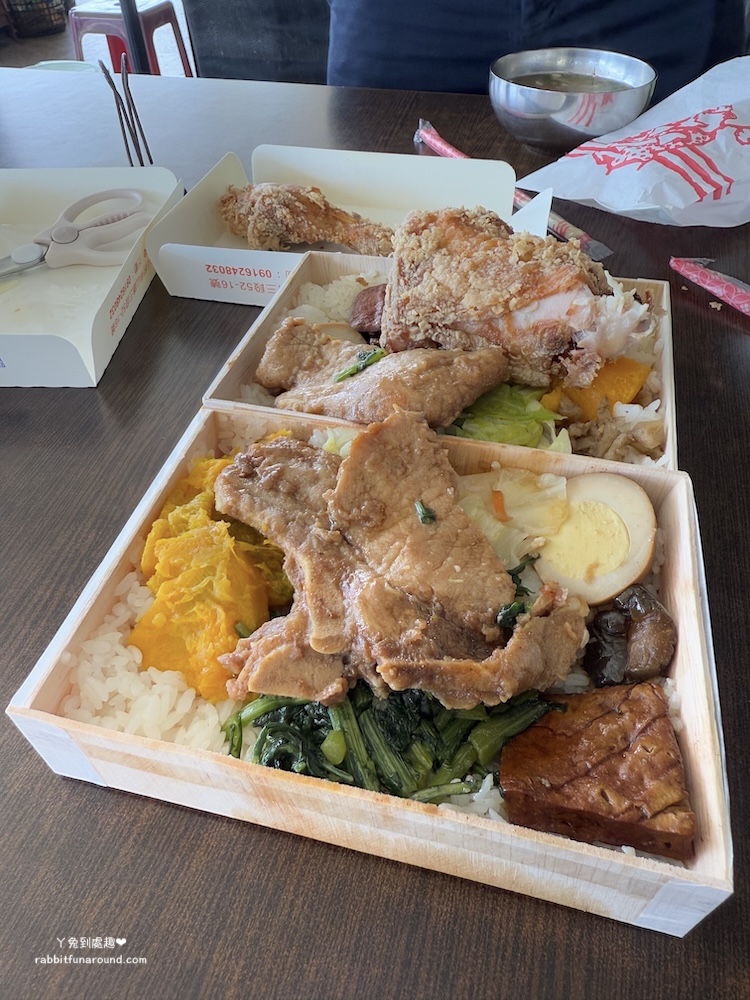 去墾丁的路上我們午餐吃了「枋山鬍鬚源池上飯包」,這間便當在Google地圖上居然有快3000人評價、4.1顆星,便當100元至130元,有招牌飯、排骨、控肉、雞排、雞腿飯等,內用有免費湯可以裝。
