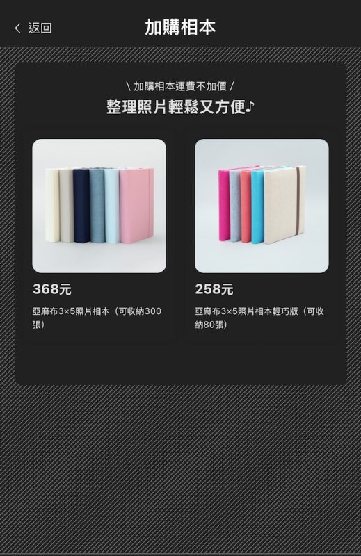 我有加購念念印刷的相簿,念念印刷依照相片尺寸不同,有三款相簿可選擇。
