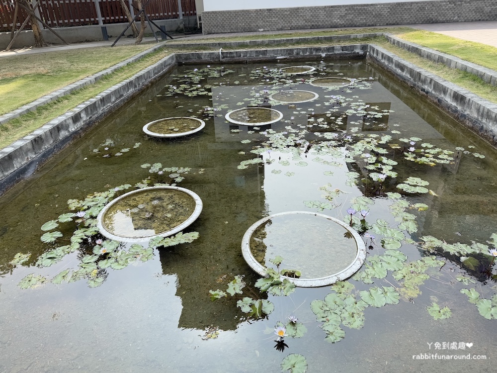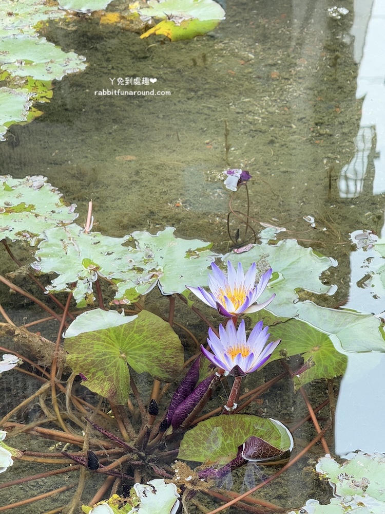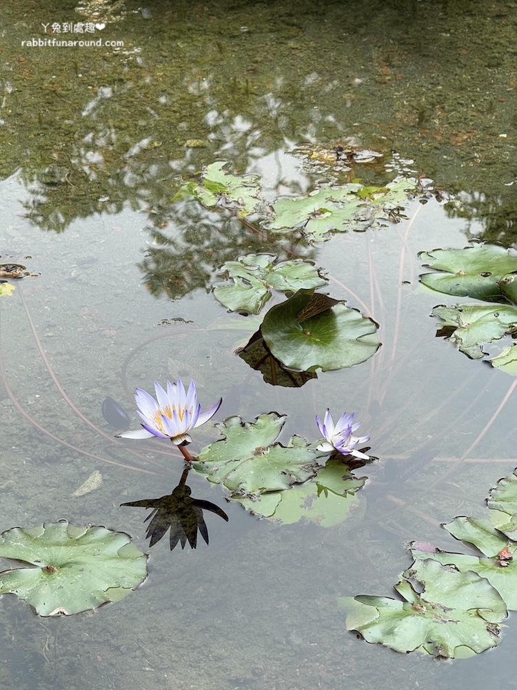 逍遙園的小水池裡有紫色睡蓮,增添了一份靜謐的美感。